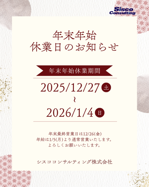 年末年始休業日のお知らせ