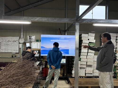 2025.12.26 山形県西川町へ啓翁桜PRプロジェクトに向けた大型モニターを提供いたしました! 令和7年12月吉日、山形県西川町へ訪問し、啓翁桜PRプロジェクトに向けて大型モニターを寄贈いたしました。 弊社は同プロジェクトにおいて、出荷調整システムの開発に携わっております。 ↓弊社社長(写真右)が、西川町副町長様(写真左)へ目録を提出した時の様子 ↓啓翁桜の作業場へ訪問し、大型モニターを設置している時の様子 一覧ページへ